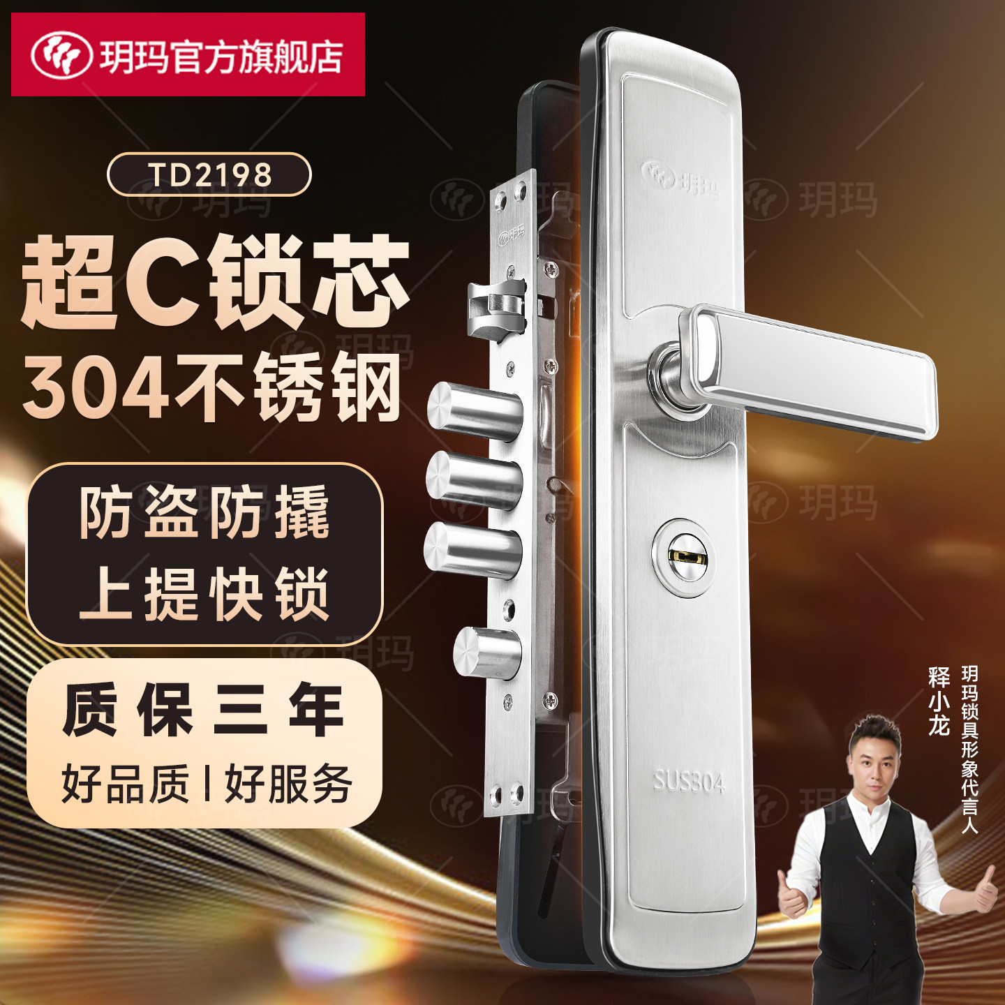 玥玛防盗门锁套装家用通用型机械锁304不锈钢入户大门锁机械锁具