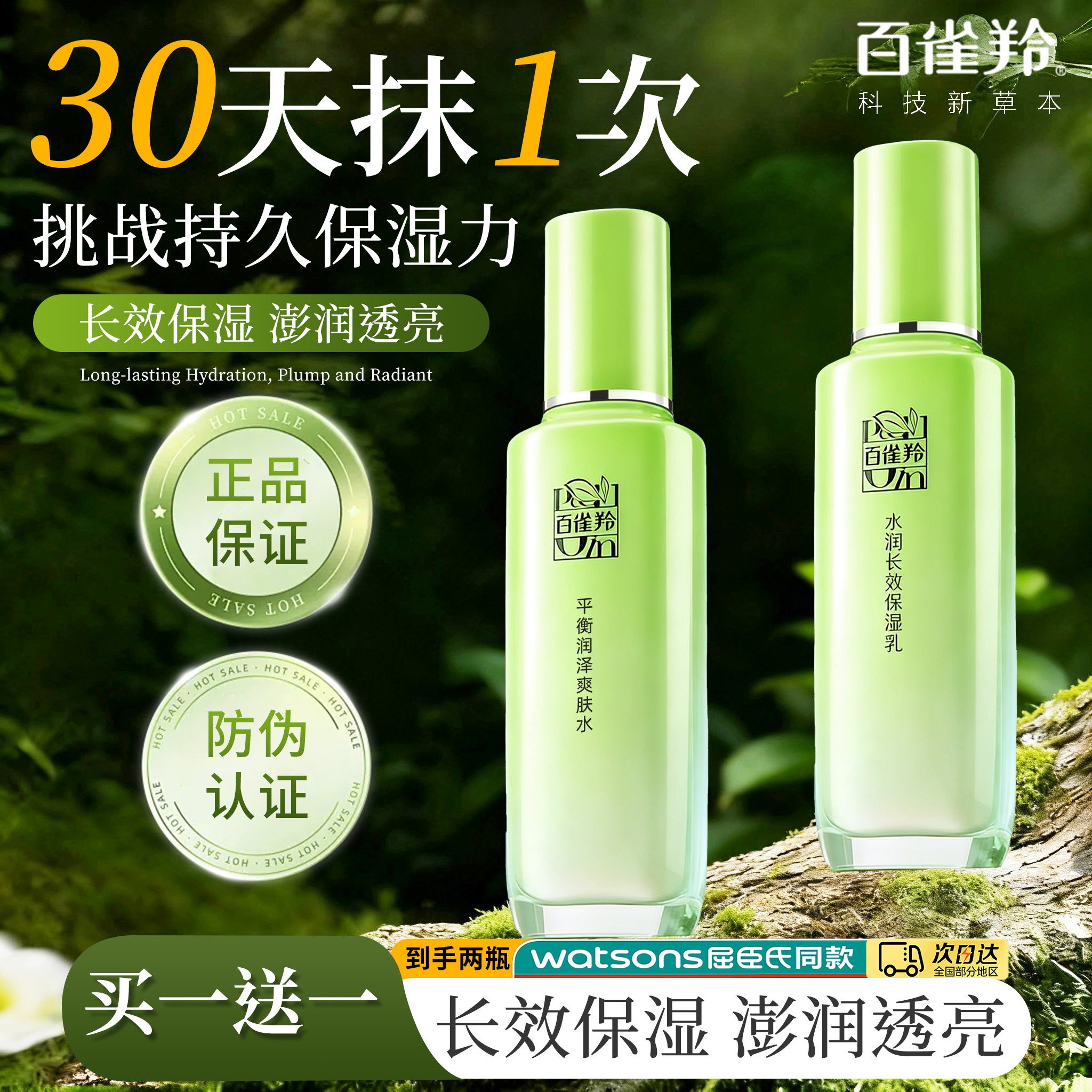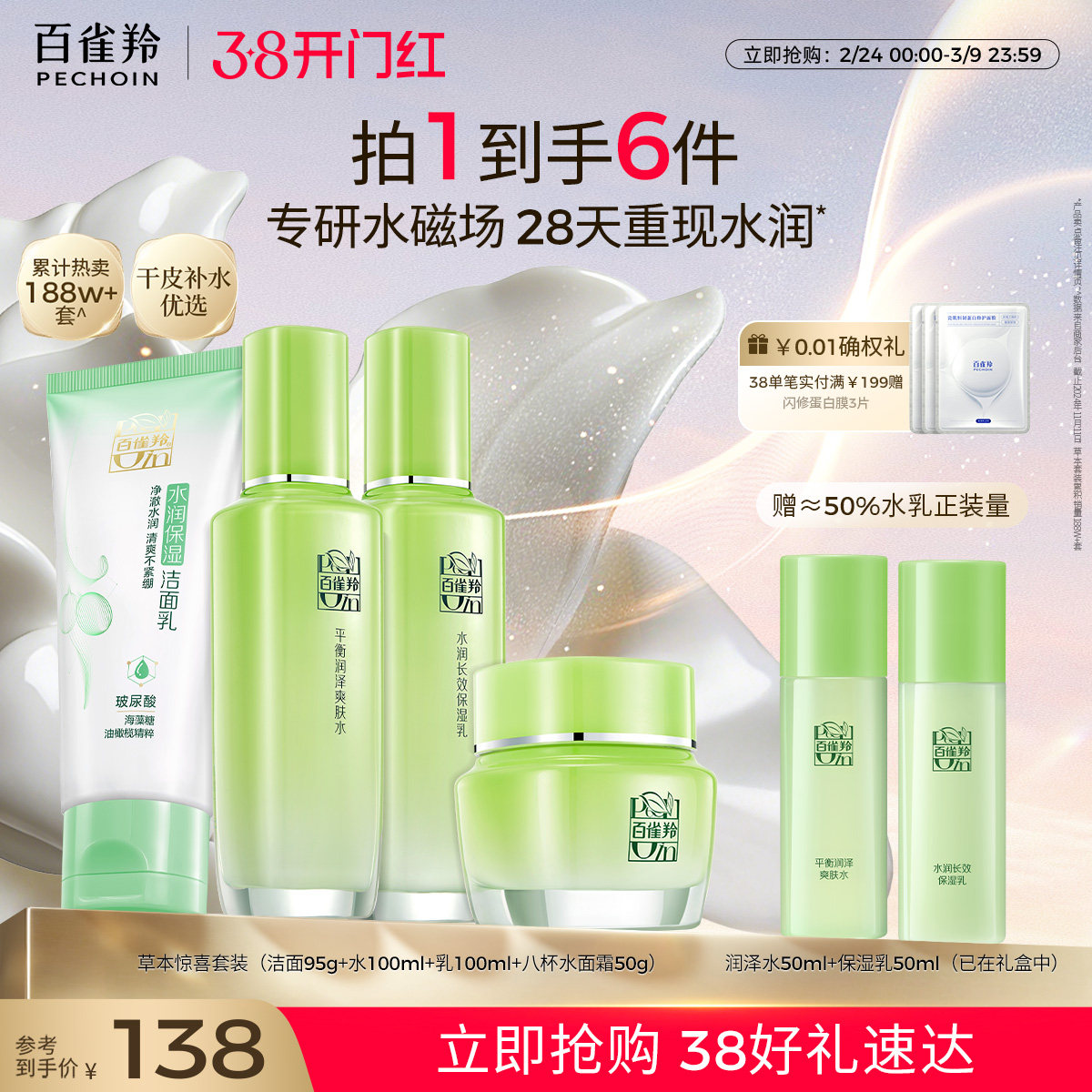 PECHOIN/百雀羚草本惊喜水乳高保湿补水套装护肤品 补水保湿滋润