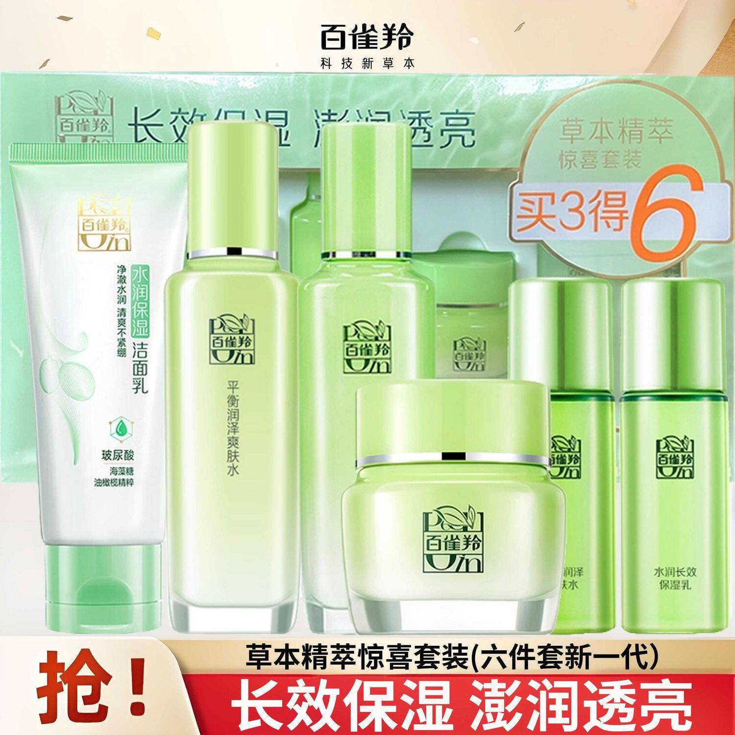 百雀羚草本精粹惊喜套装洁面水乳霜 保湿补水套装6件套正品护肤品