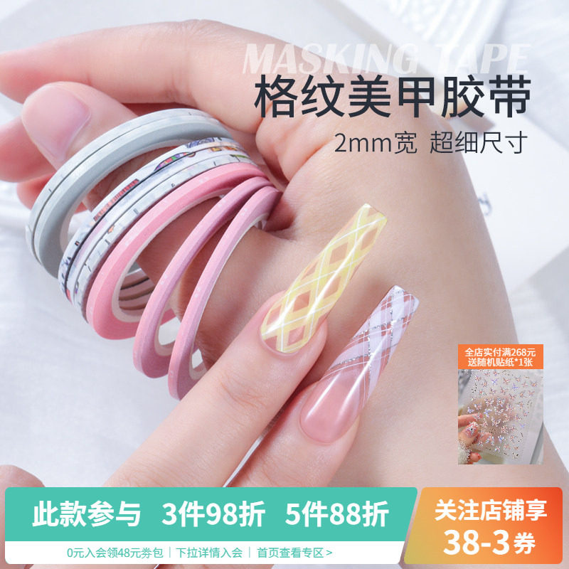 超细2mm防渗透易撕法式格纹线条美纹胶带贴纸美甲店专用辅助工具