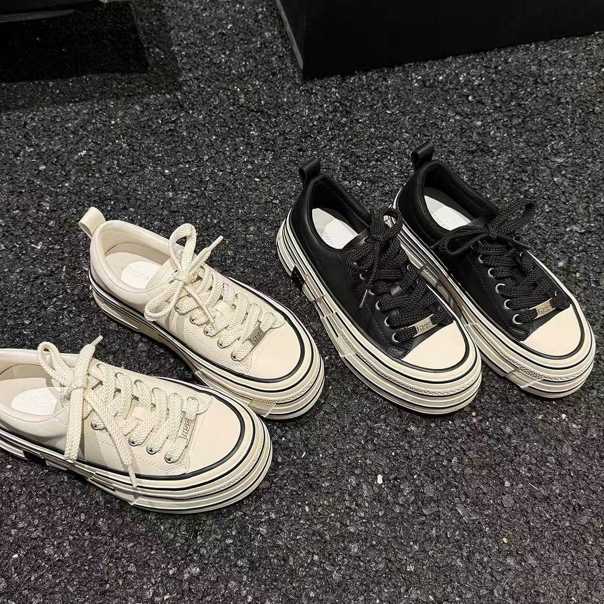 玛速主义2026新款厚底百搭休闲饼干鞋皮面平底板鞋女夏学生小白鞋