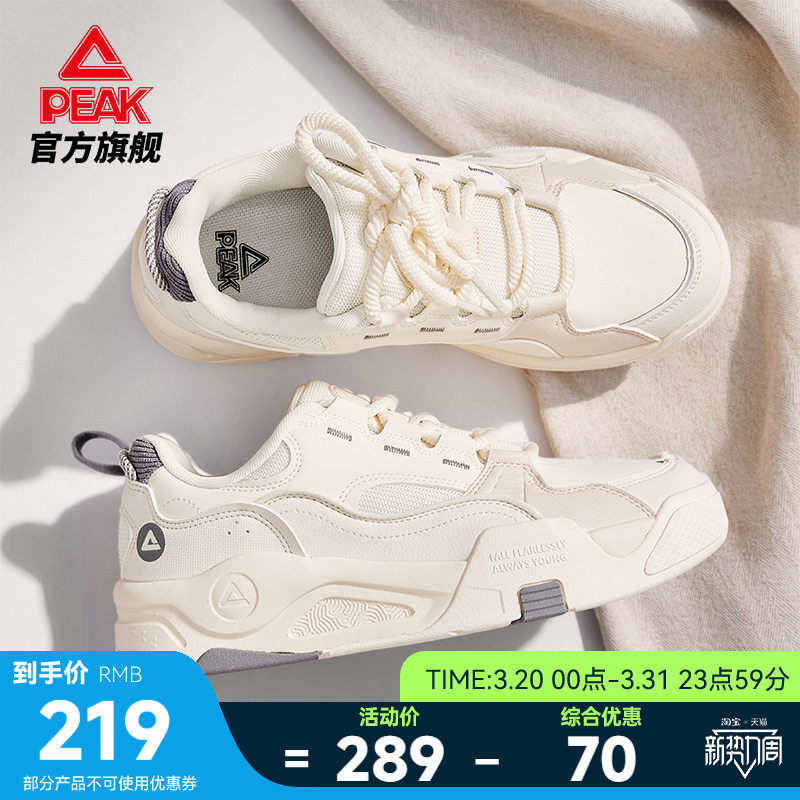 匹克云迹态极板鞋女鞋夏季新款厚底增高小白鞋皮面休闲鞋子运动鞋