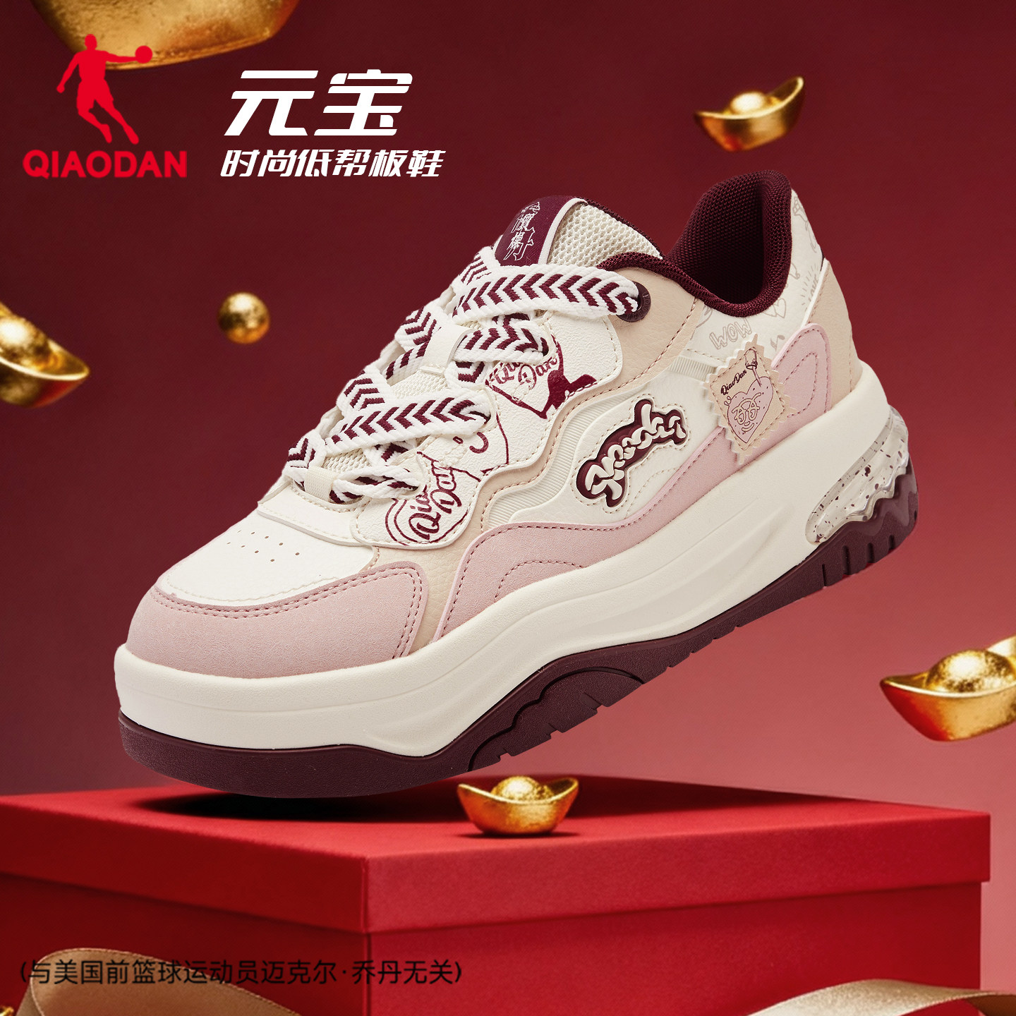 元宝乔丹红色新年款女板鞋商场同款本命年皮面增高防水运动休闲鞋