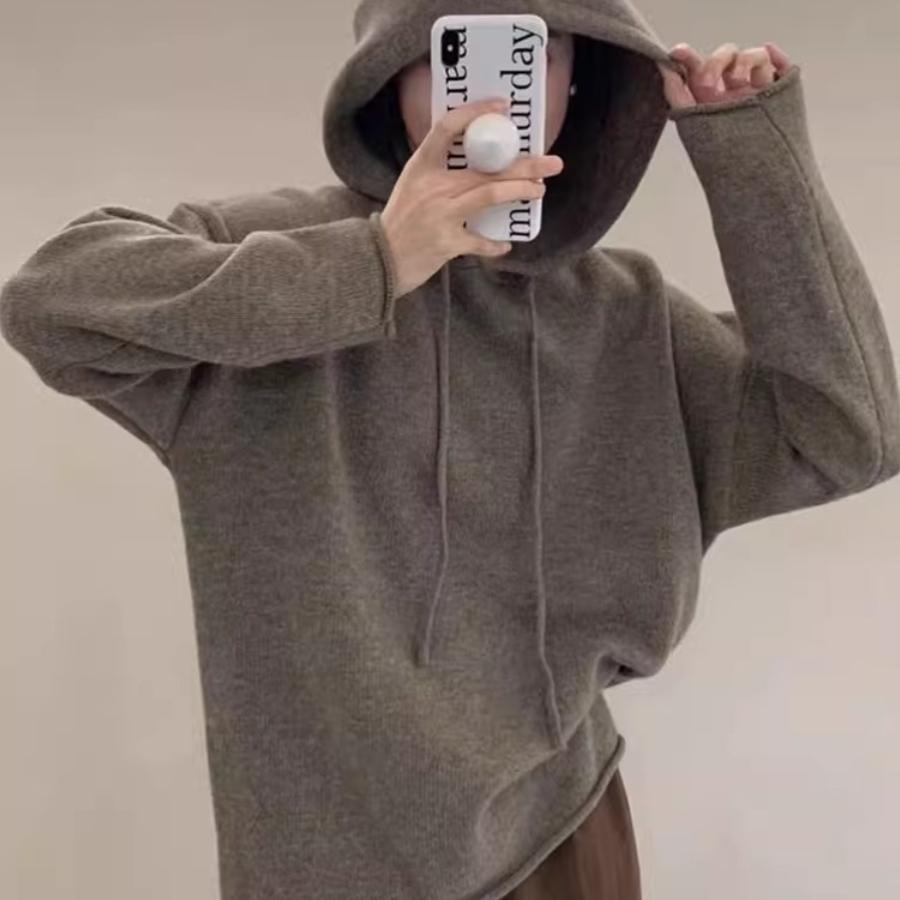 - 套头连帽宽松纯色长袖卫衣绒衫