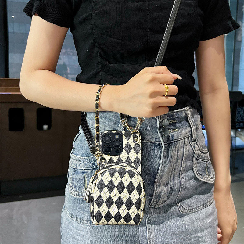 适用于oppoR17手机壳15梦境版菱格r11零钱包r9s手提绳11plus插卡套r15x小众oppo手机套r9p小香风