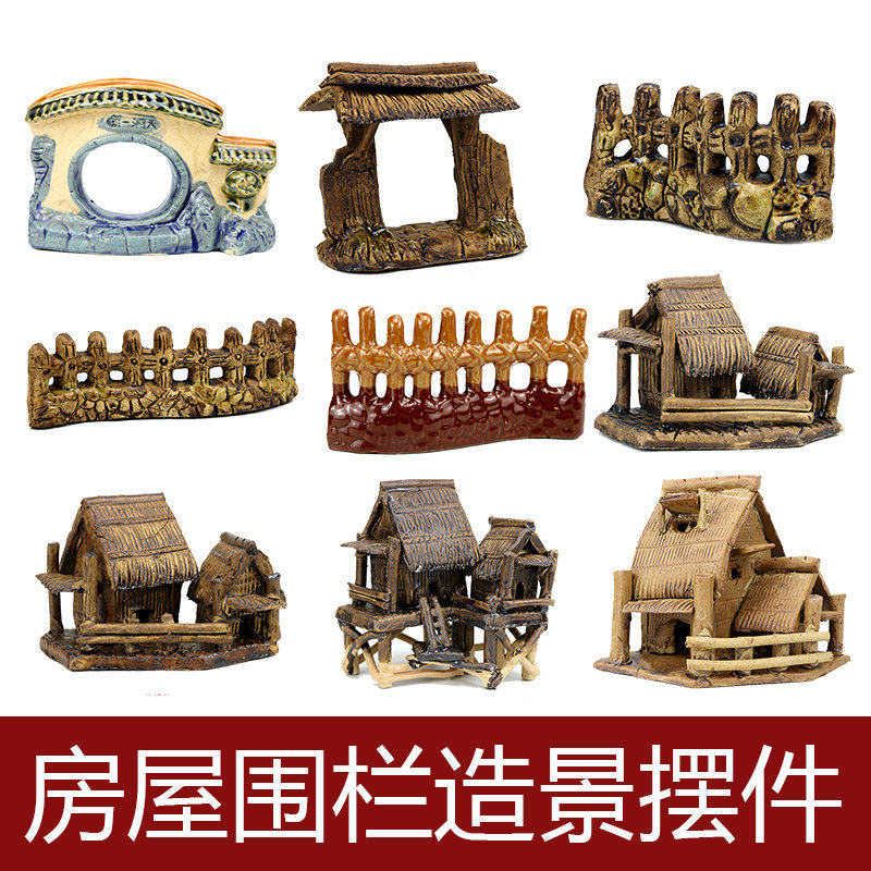 假山摆件配件造景盆景摆件鱼缸装饰小摆件围栏陶瓷房屋吸水石配件