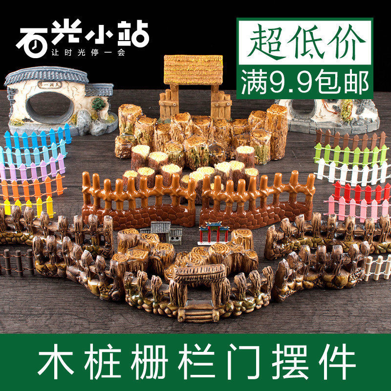 吸水石上水石盆景假山摆件 配件 栏杆门栏围栏 陶瓷树脂栅栏摆件