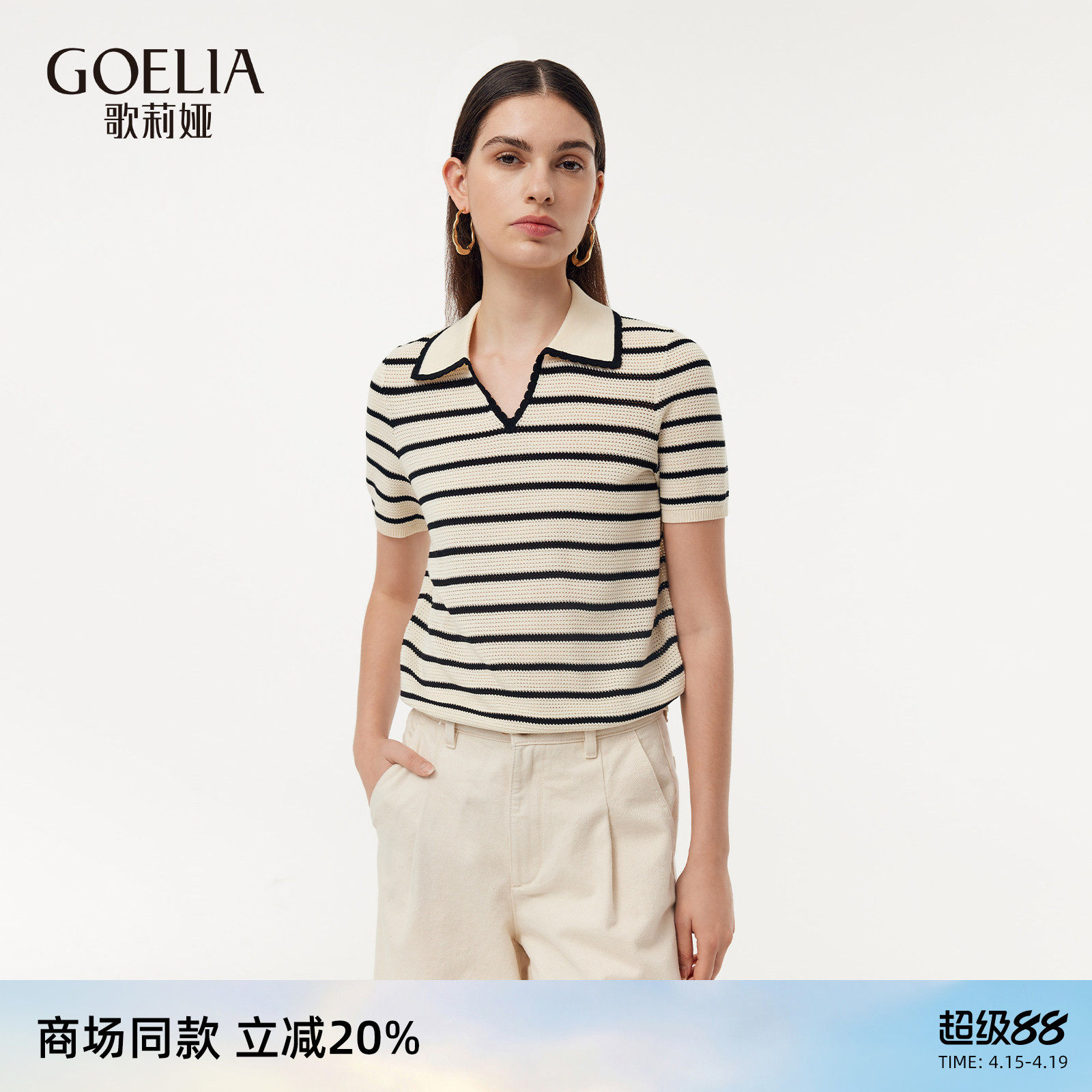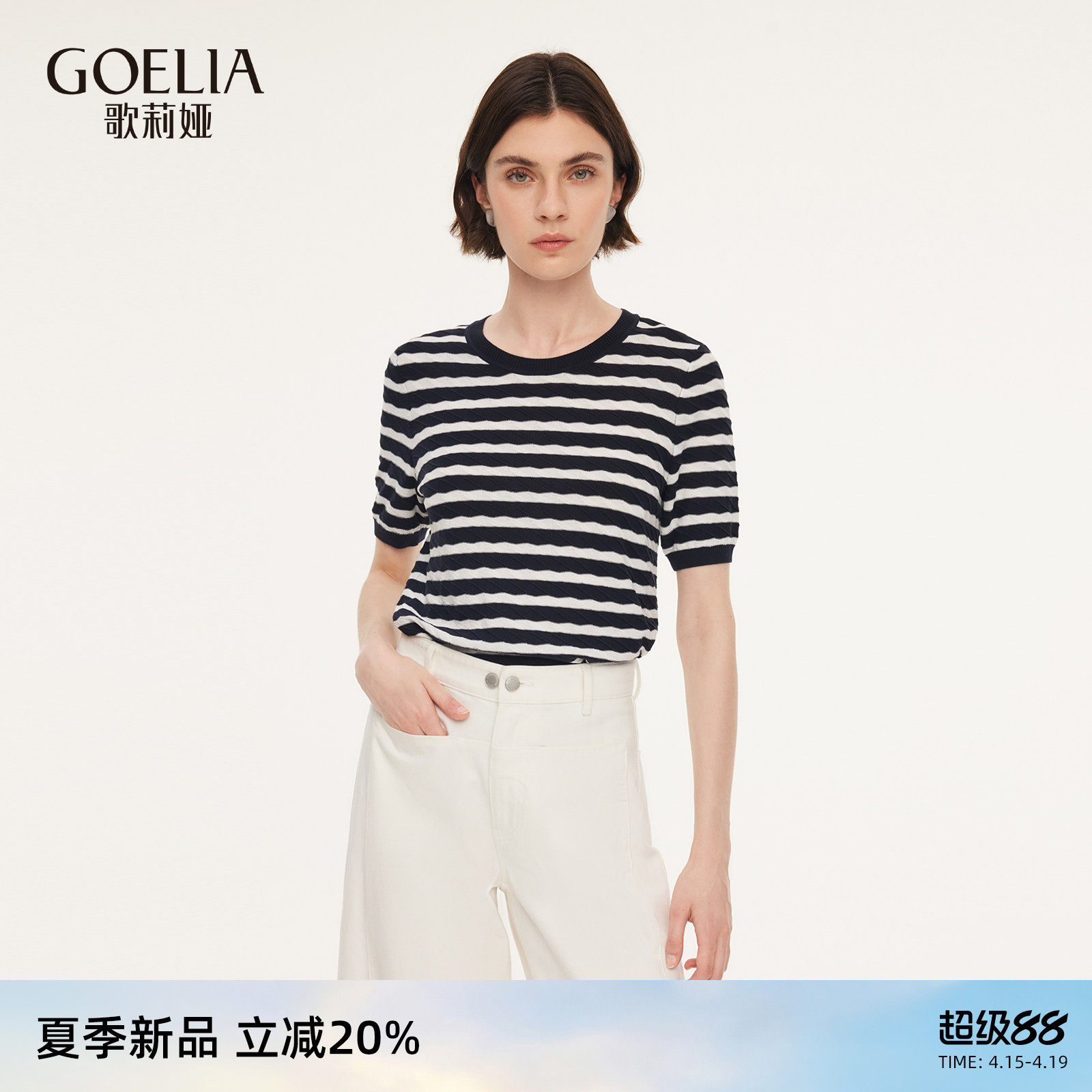 歌莉娅莱赛尔短袖T恤女2026新款夏季条纹上衣圆领套头衫1F3C5G310