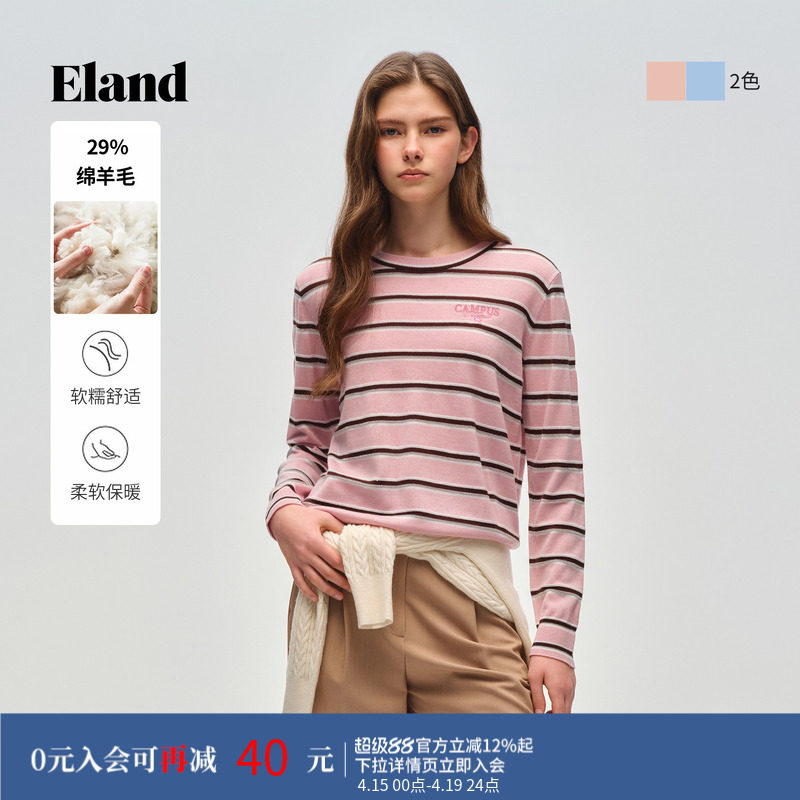 【含绵羊毛】Eland衣恋毛衣女撞色条纹套头针织衫2026春季新款