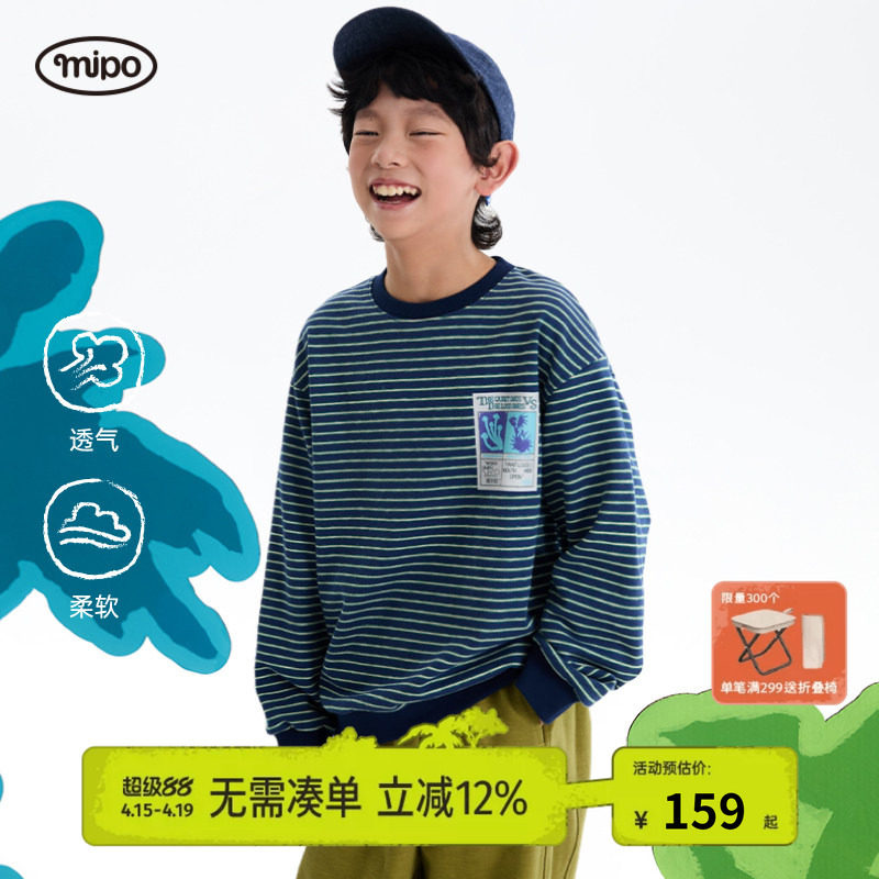 【新品】mipo春季儿童卫衣红色长袖t恤条纹男女童户外上衣套头衫