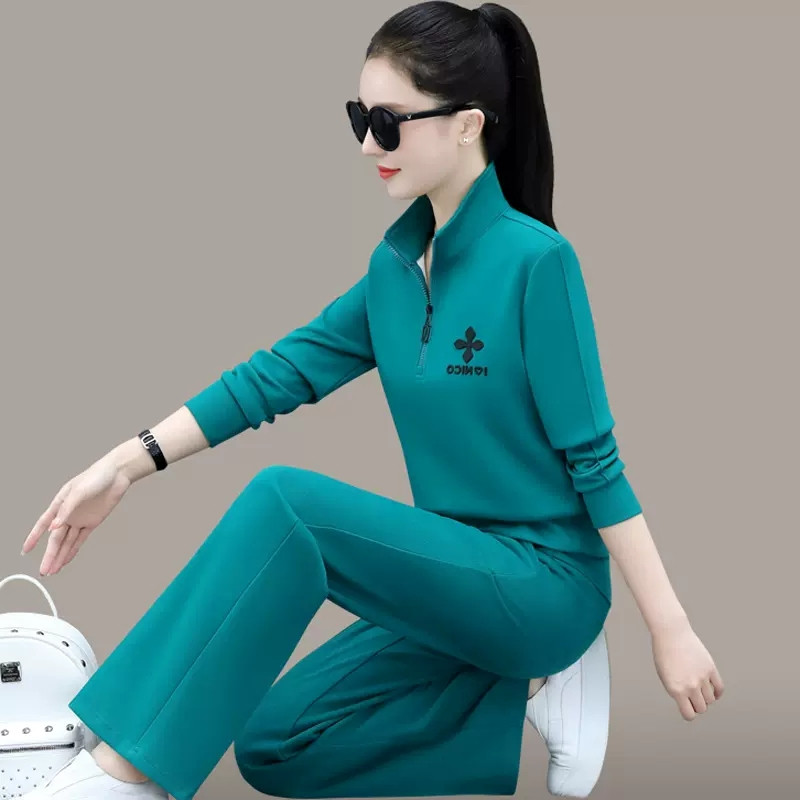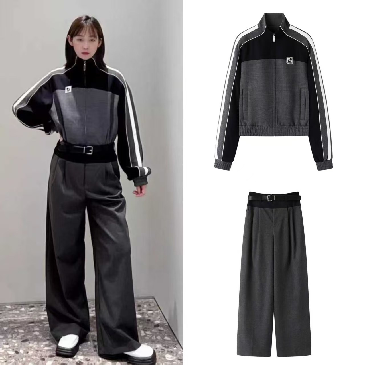 DN高端定制2025冬季新款时尚休闲运动风立领拉链外套阔腿裤套装女