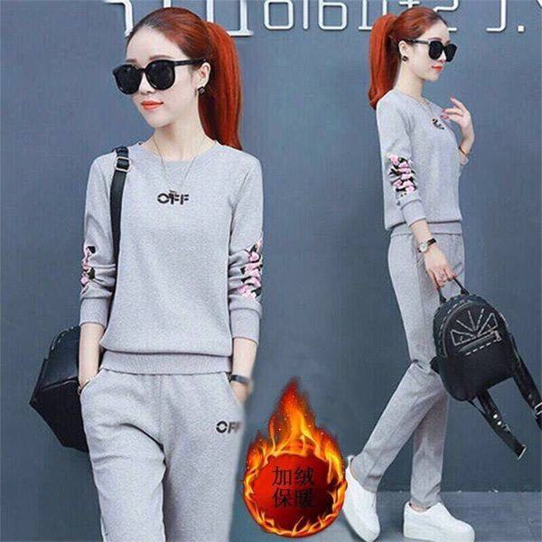 特价】加绒加厚运动套装女士冬季显瘦卫衣时尚大码学生保暖两件套