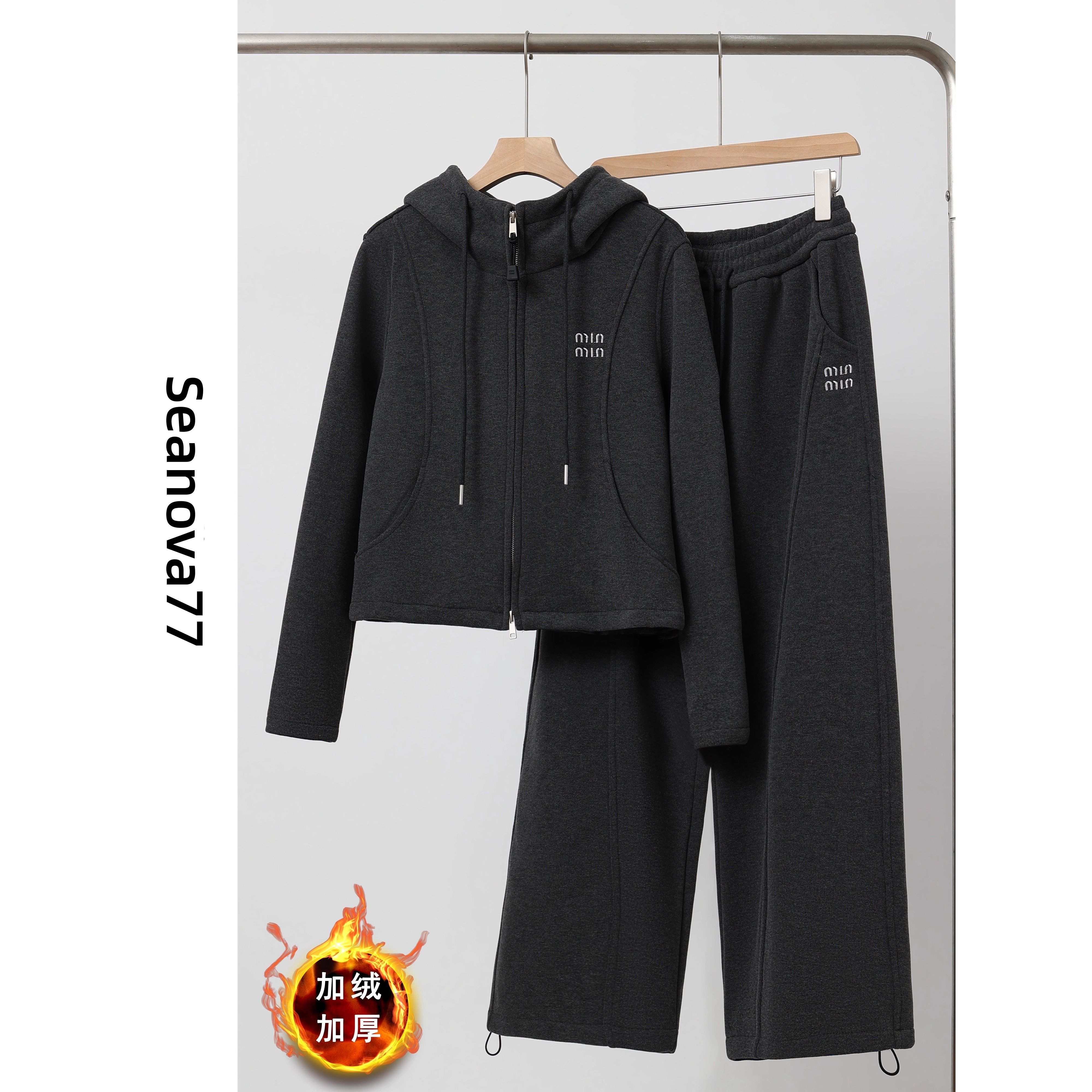 DN高端定制2025冬季新款时尚减龄休闲灰色运动卫衣阔腿裤套装女