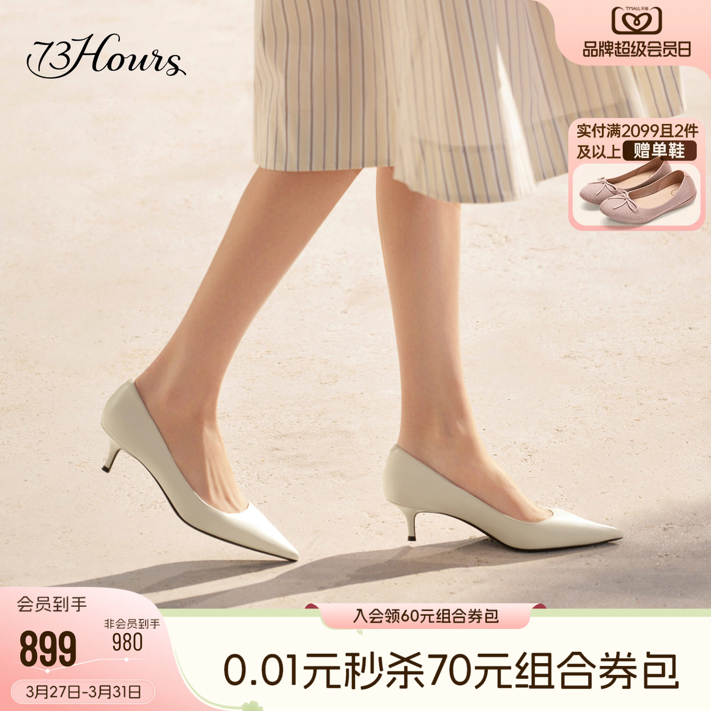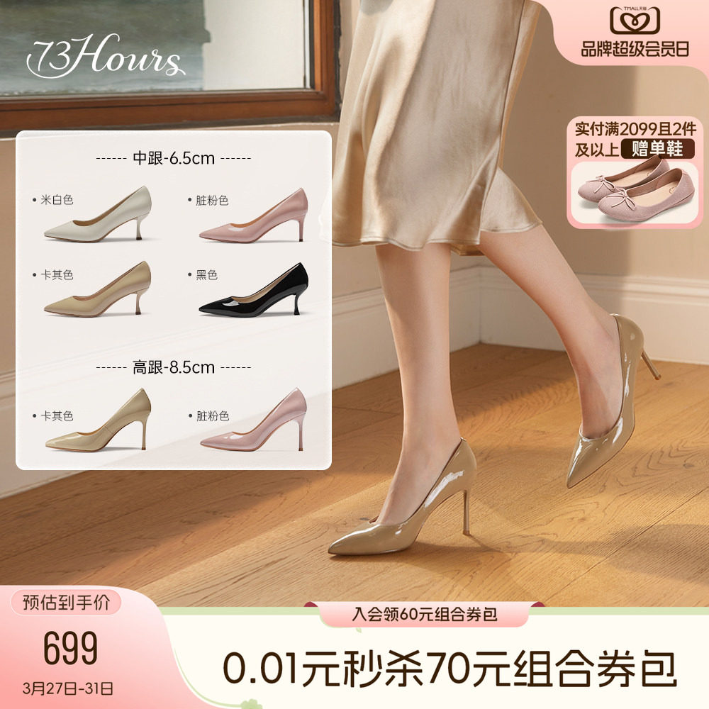 73hours女鞋通勤日志2026春季新款细跟尖头通勤高跟鞋女浅口单鞋
