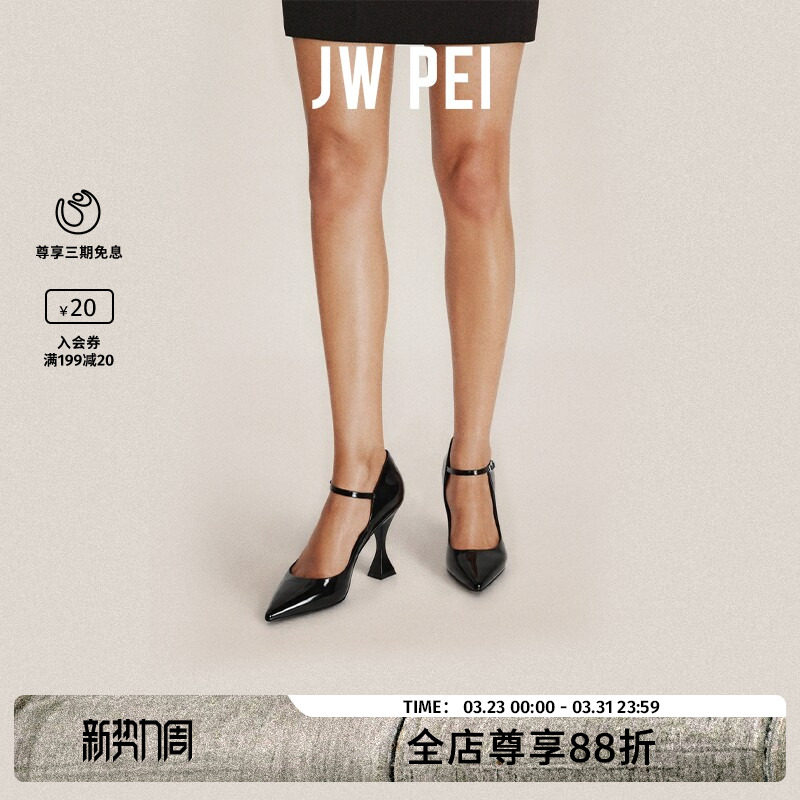 Jennie同款JW PEI尖头高跟鞋女细跟不累脚红黑白色玛丽珍单鞋婚鞋