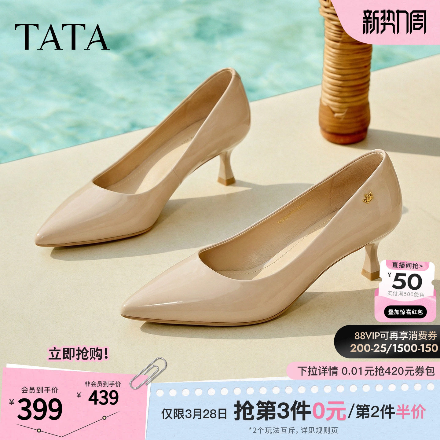 TATA他她女鞋2026春季新款浅口单鞋女真皮尖头细跟高跟鞋U3K01AQ6