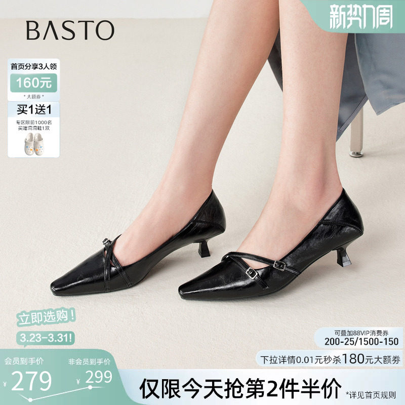 百思图26春新款通勤羊皮小猫跟高跟鞋尖头女浅口细跟单鞋K5828AQ6