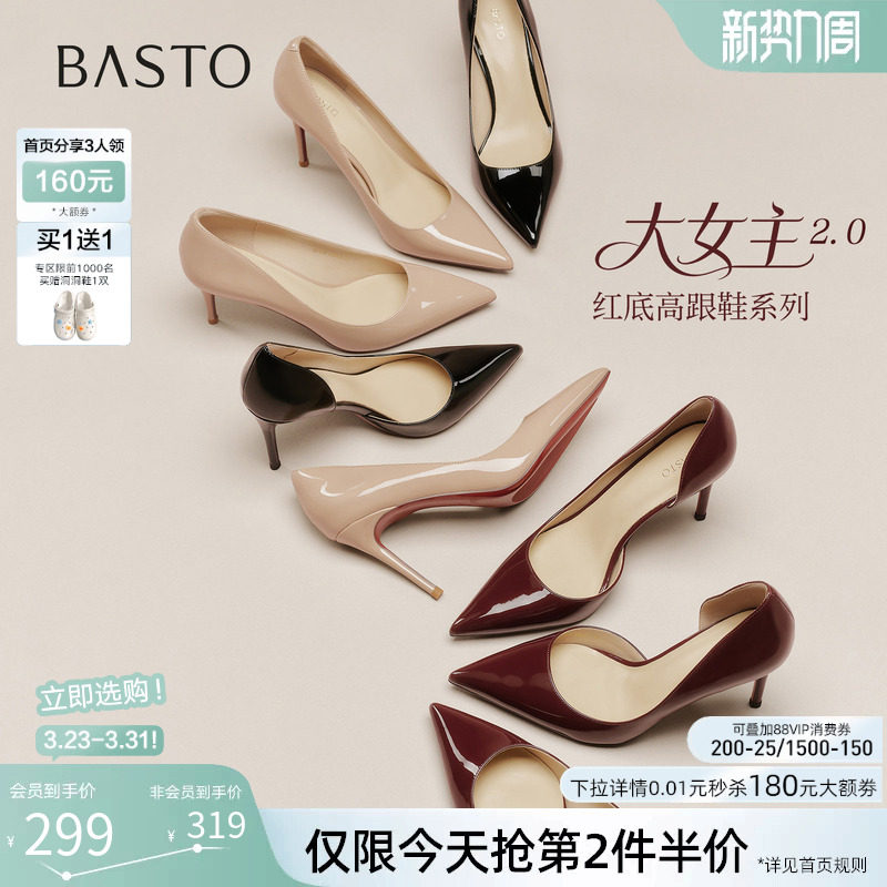 【大女主】百思图2026春季商场新款裸色尖头黑色细跟高跟鞋女单鞋