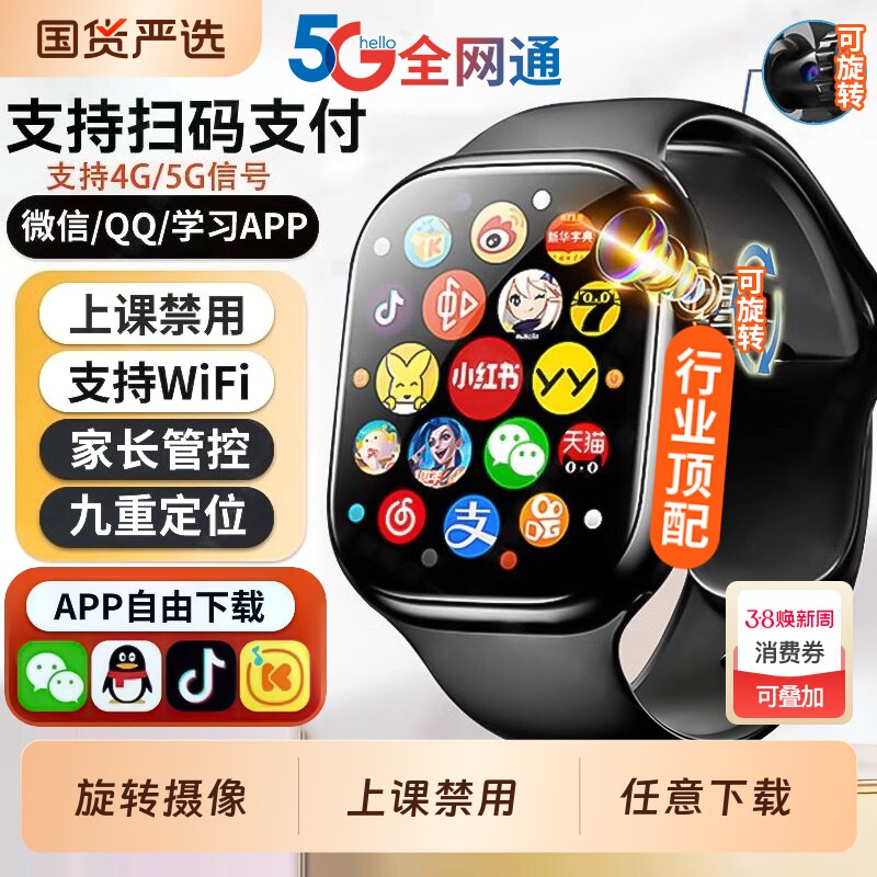 正品新款适用华为手机儿童电话手表智能定位5G旋转双摄男女孩无游戏天才专用防水移动硅胶方形通话微信下载