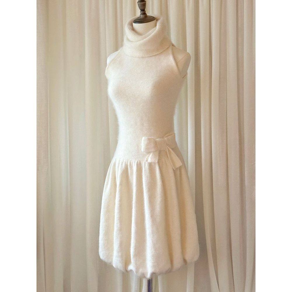 2026新款高领毛衣无袖秋冬连衣裙女装性感露胸纯欲大露背包臀裙子