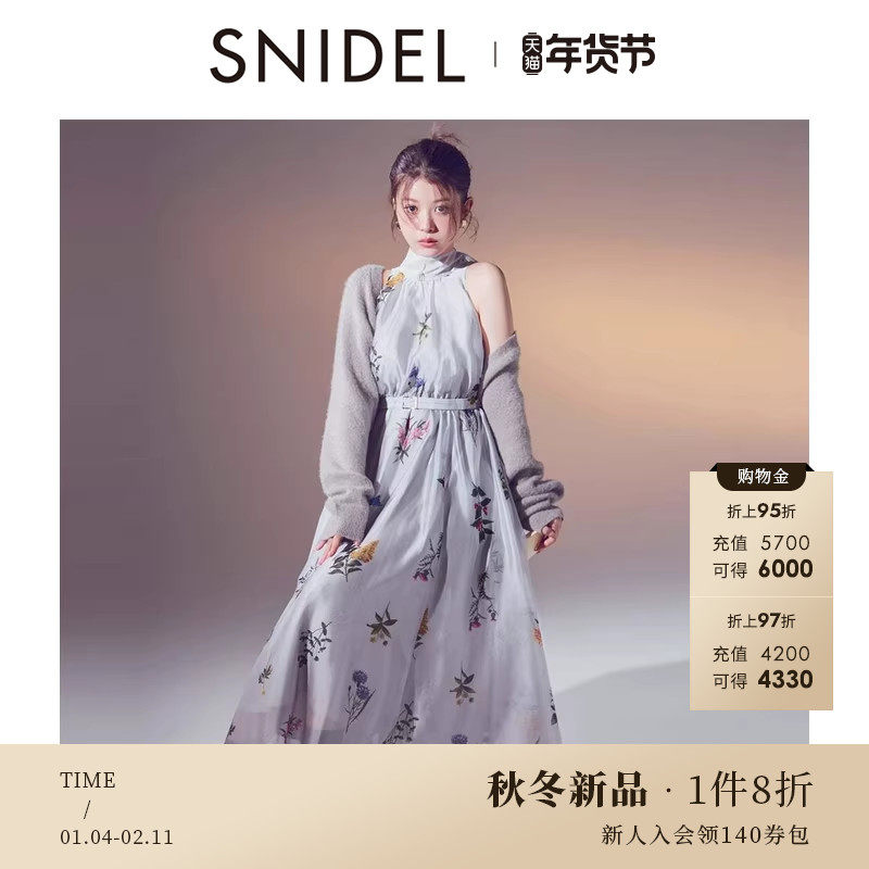 SNIDEL2025秋冬新品优雅针织开衫无袖印花连衣裙两件套SWNO255090
