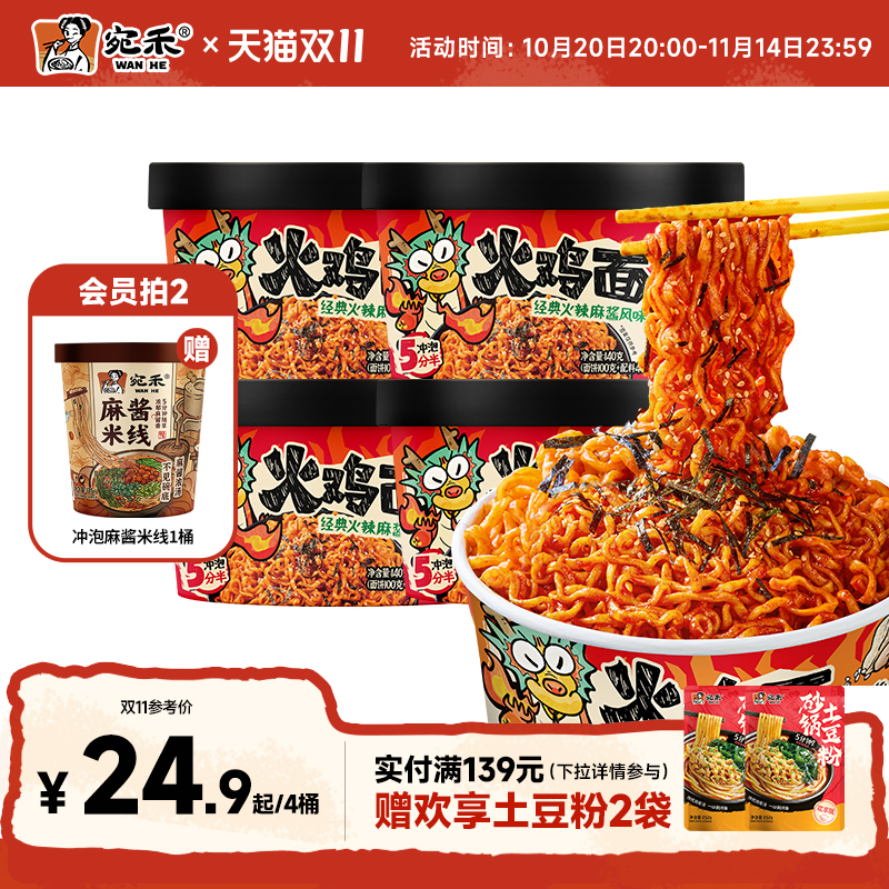新品宛禾麻酱火鸡面桶装韩式泡面麻辣方便面速食拌面夜宵整箱批发