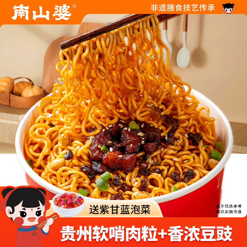 1桶x175g丨南山婆贵州豆豉软哨火鸡面桶装方便面拌面速食大份量