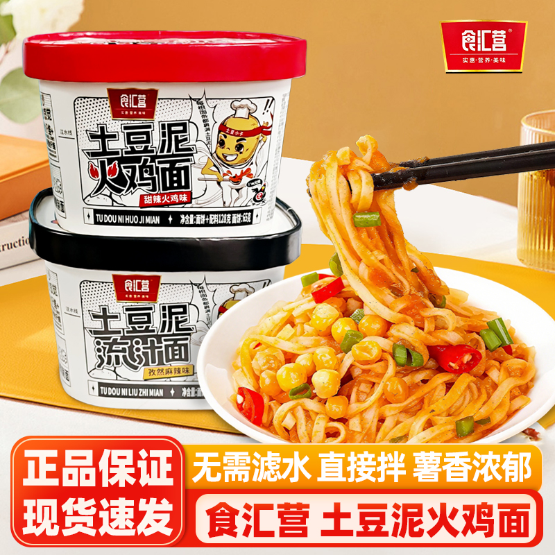 土豆泥泥面拌面火鸡面桶装孜然麻辣味拌面免煮泡面即食方便面夜宵