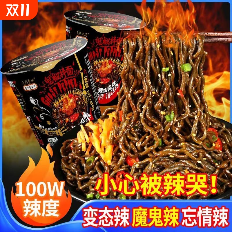 鬼椒面魔鬼辣特辣火鸡面超辣干拌面桶装速食泡面变态辣方便面宿舍