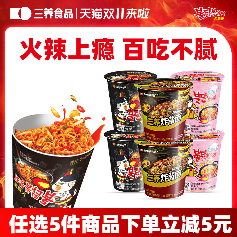 韩国三养火鸡面桶装泡面超辣变态辣整箱奶油干拌面炸酱杯面方便面
