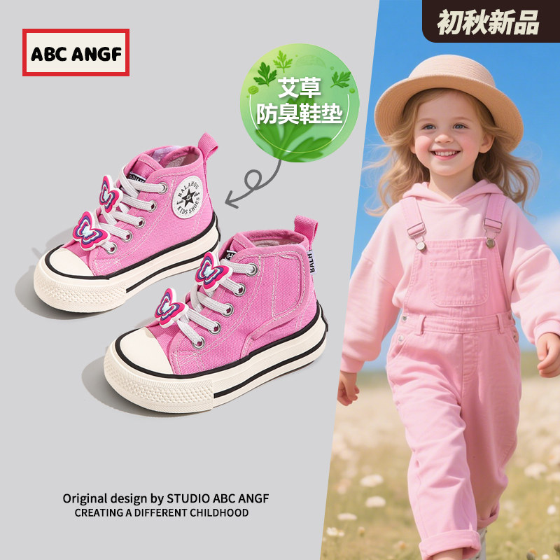 ABC ANGF●儿童帆布鞋2026春秋新款透气男童板鞋软底高帮女童布鞋