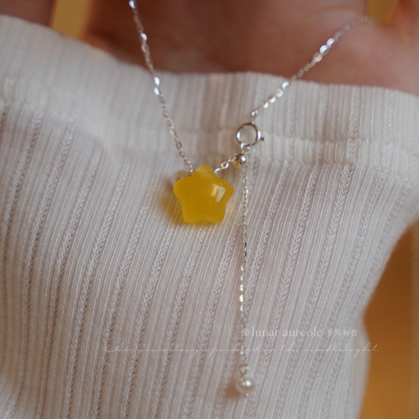 原创 小小的星星 珍珠蜜蜡项链s925纯银锁骨链小众星月精致礼物