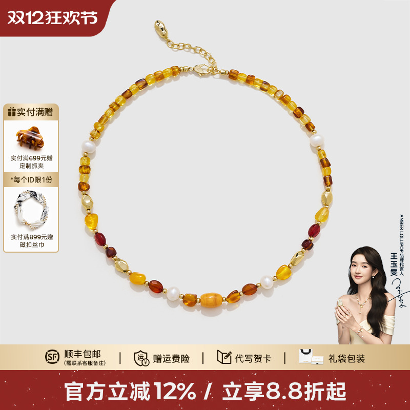 Amber Lollipop蜜蜡项链女珍珠颈链天然宝石串珠锁骨链 炽阳系列
