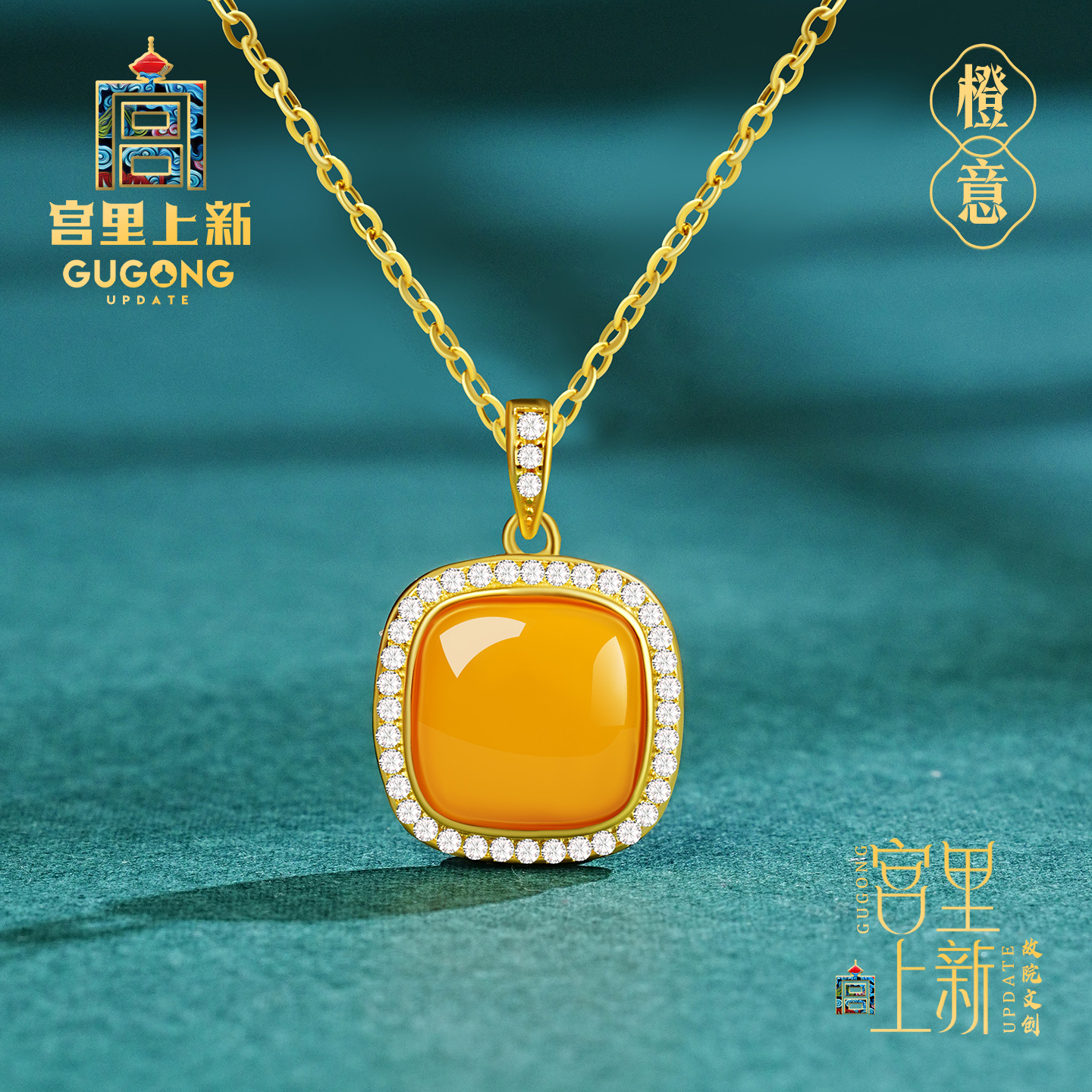 宫里上新蜜蜡项链女纯银小方糖鸡油黄蜜蜡吊坠配饰生日礼物送妈妈