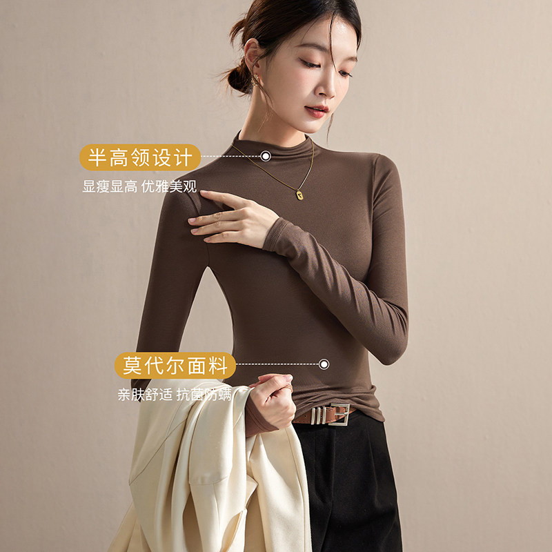 2025秋季新款简约时尚气质半高领修身显瘦针织衫打底衫女弹力上衣