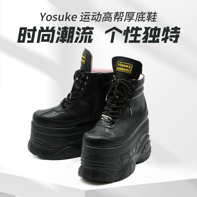 Yosuke系带厚底松糕8cm短靴原宿系jiraikei增高鞋侧拉链女靴