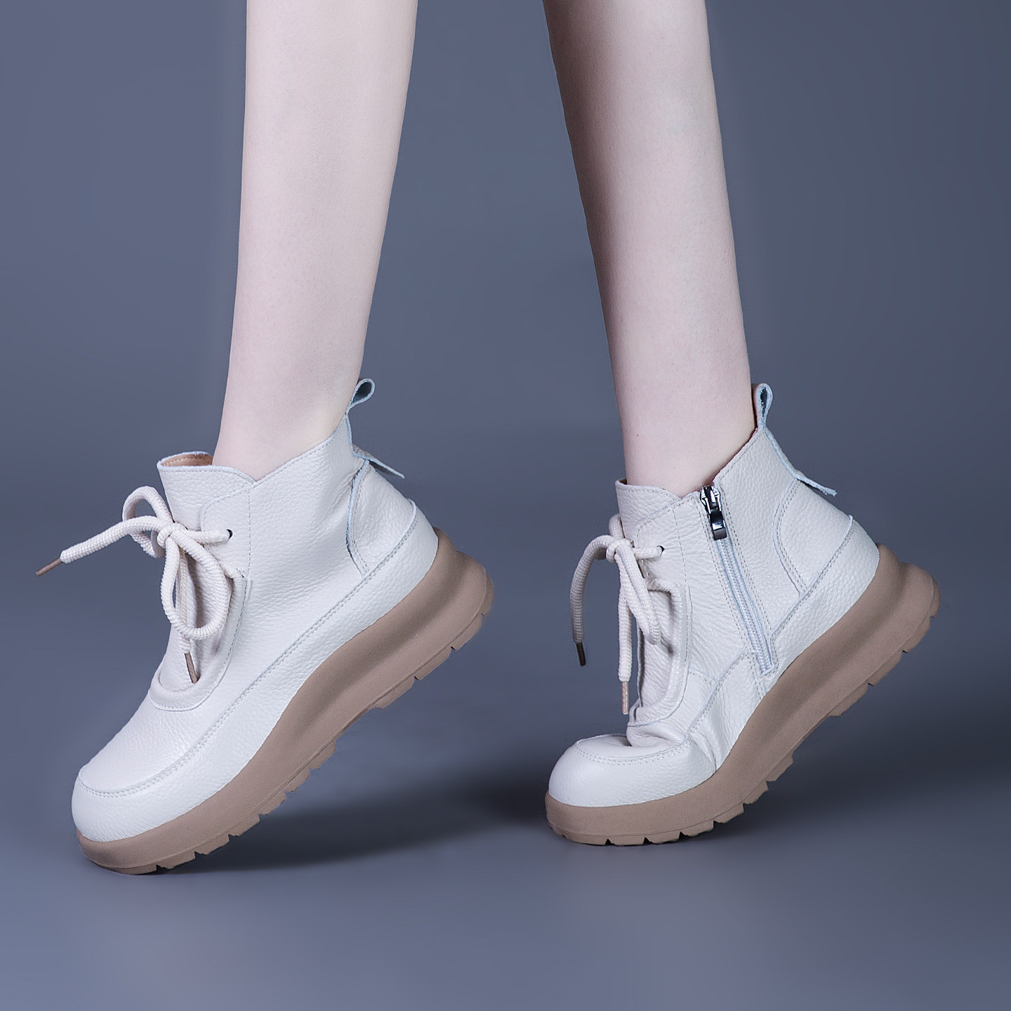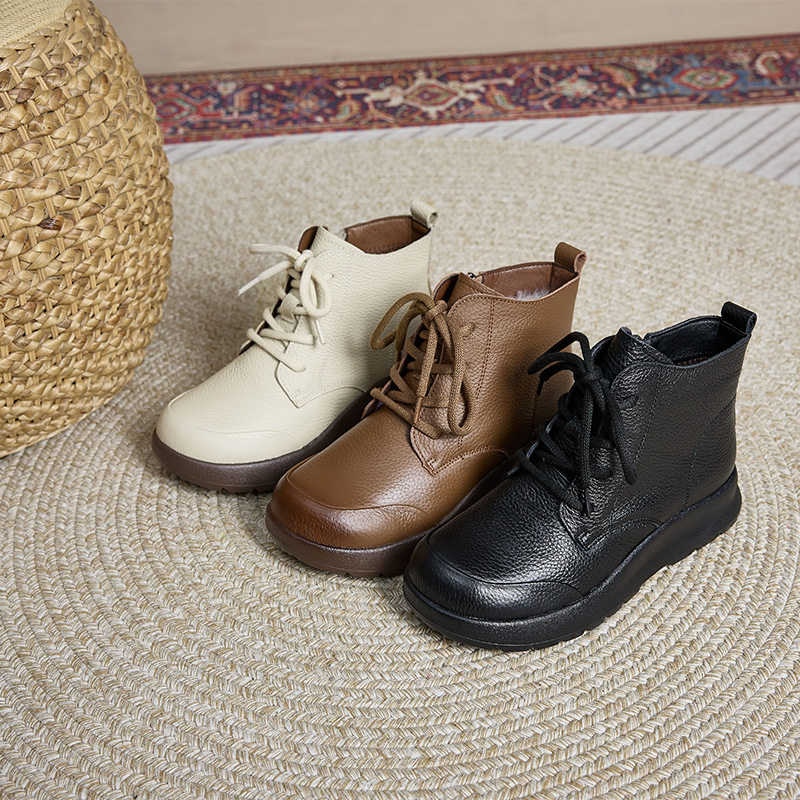 - 真皮厚底女靴短靴