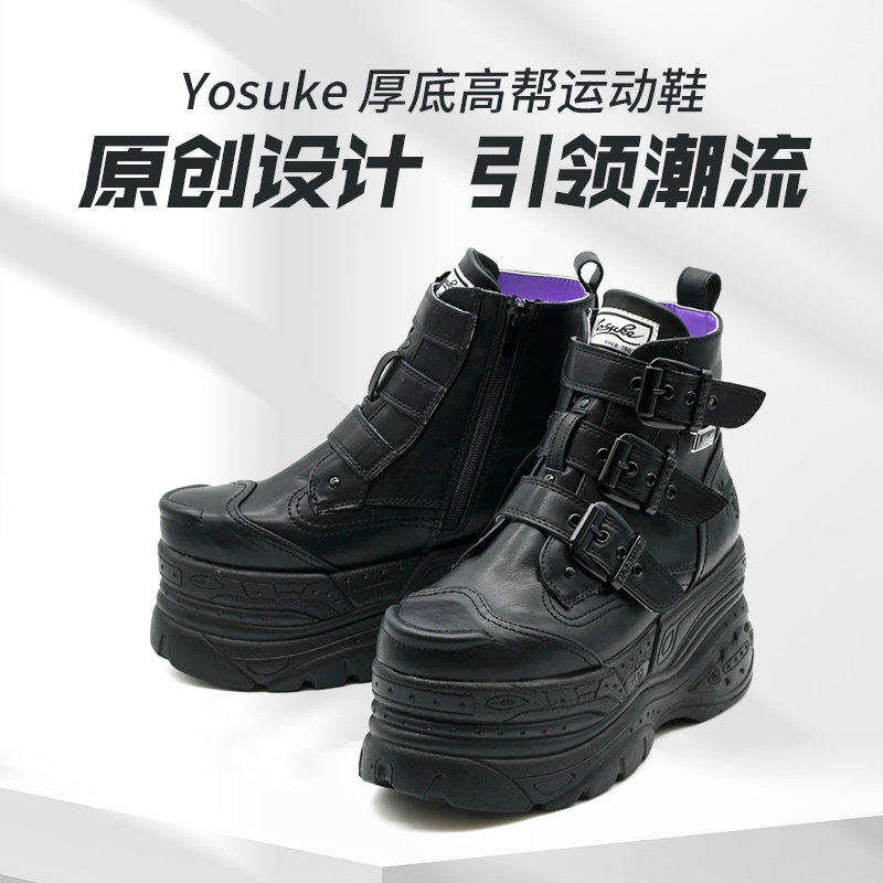Yosuke厚底绑带短靴原宿风增高厚底鞋亚文化jiraikei日本直邮