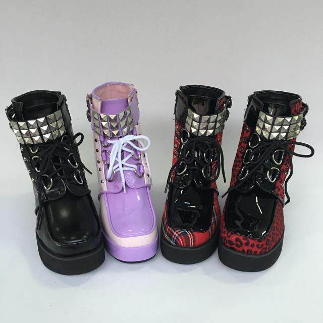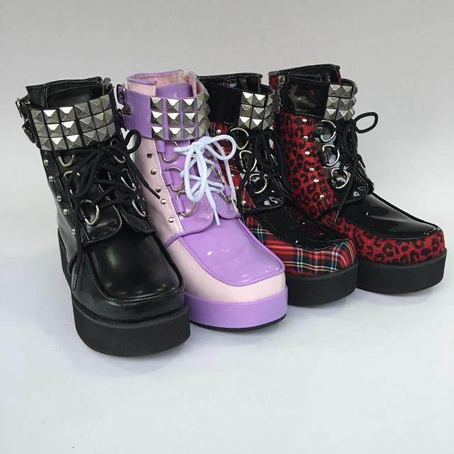 an*tai*na*日本原宿松糕厚底鞋 PUNK铆钉鞋厚底短靴zipper-1455