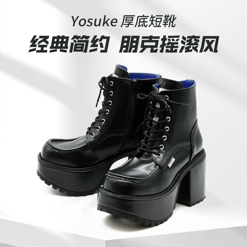 Yosuke厚底松糕女靴系带针扣侧拉链朋克风原宿jirai短靴日本直邮