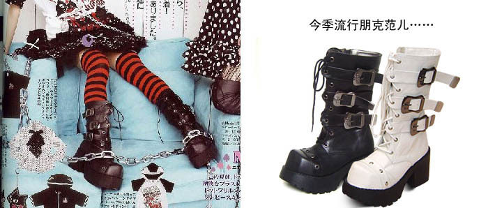 厚底短靴女粗跟原宿风日本特殊菱型头Punk靴 9033摇滚乐队主唱