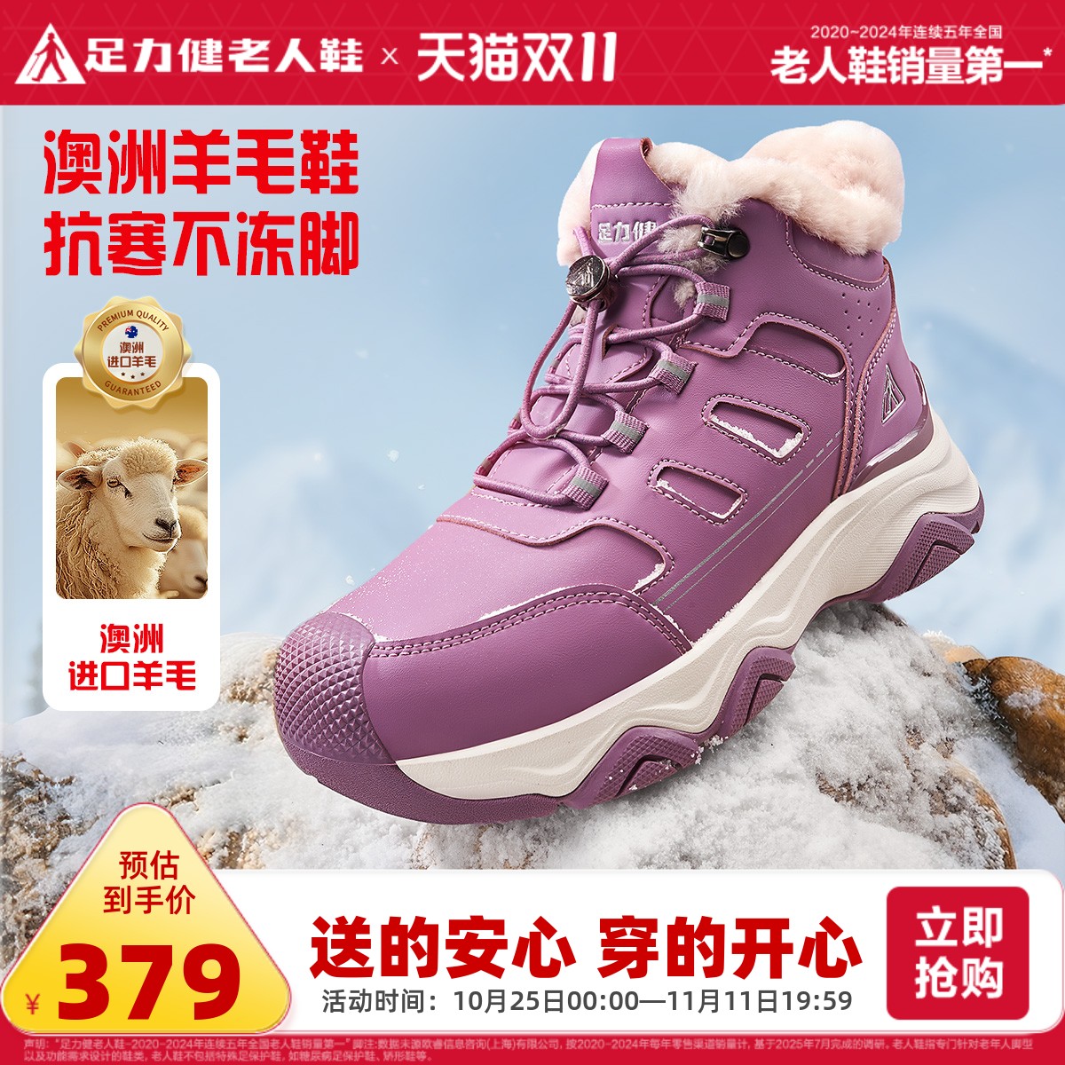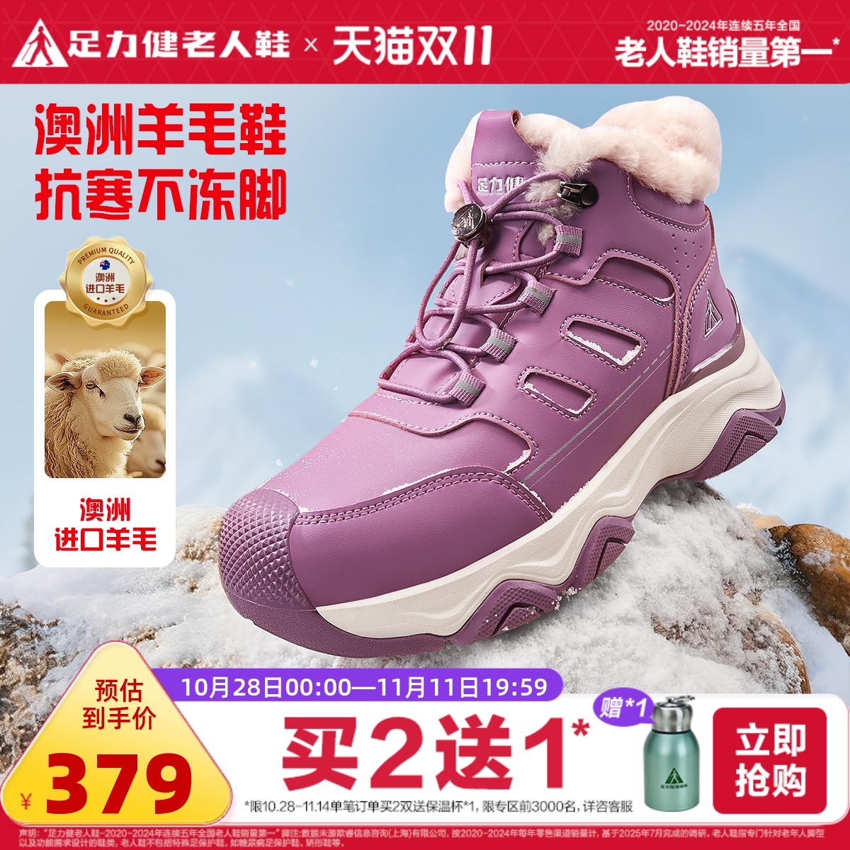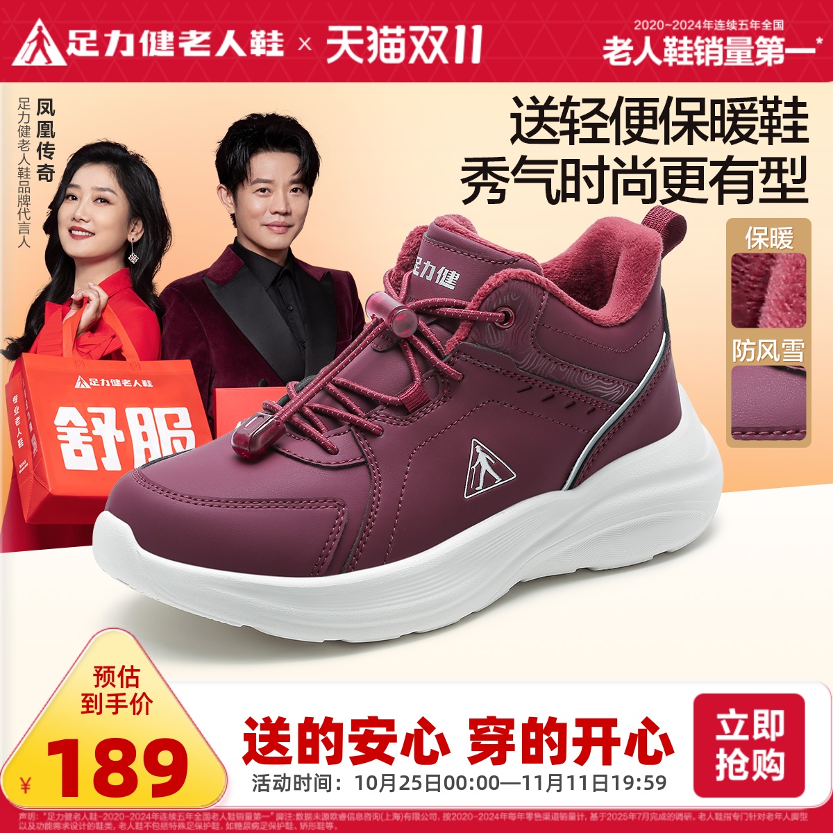 足力健老人鞋官方旗舰店正品女鞋中老年妈妈运动冬季加绒保暖棉鞋