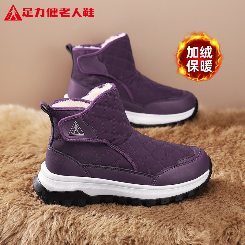 足力健旗舰店老人鞋中年妈妈2025冬季新款加绒棉鞋保暖雪地靴女鞋