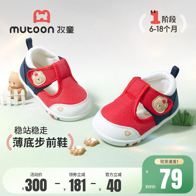 牧童婴儿鞋6-18个月2026春季新款红色网面鞋男小熊软底女宝宝鞋子