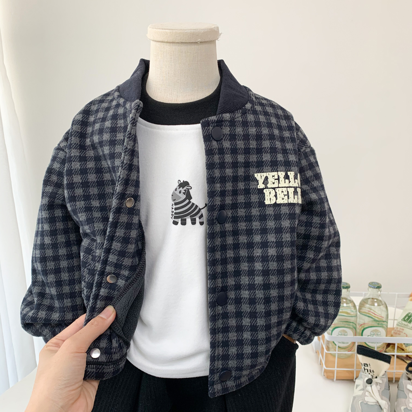 男童秋冬加绒外套2025新款儿童洋气格子夹克衫帅气男孩呢子上衣潮