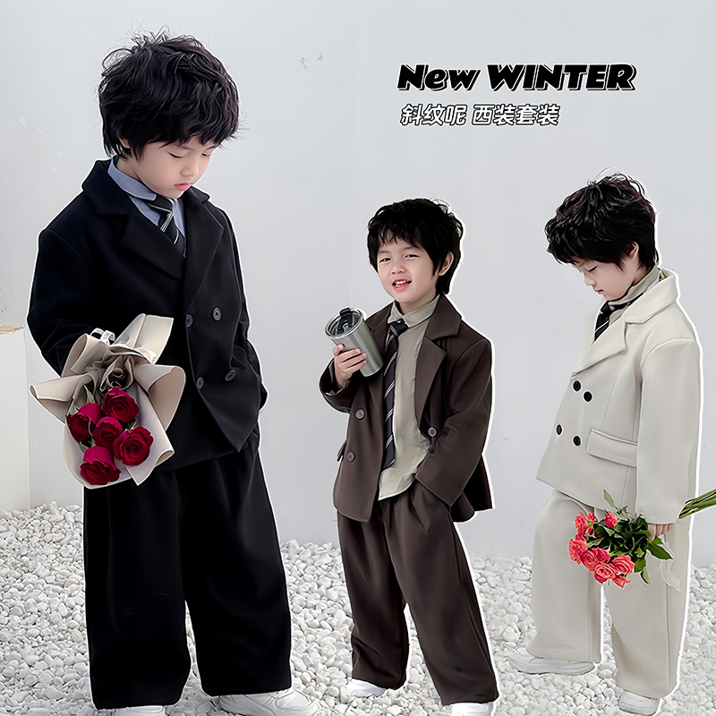 儿童西装套装男童呢子外套秋冬季帅气加绒加厚韩版新款洋气潮休闲