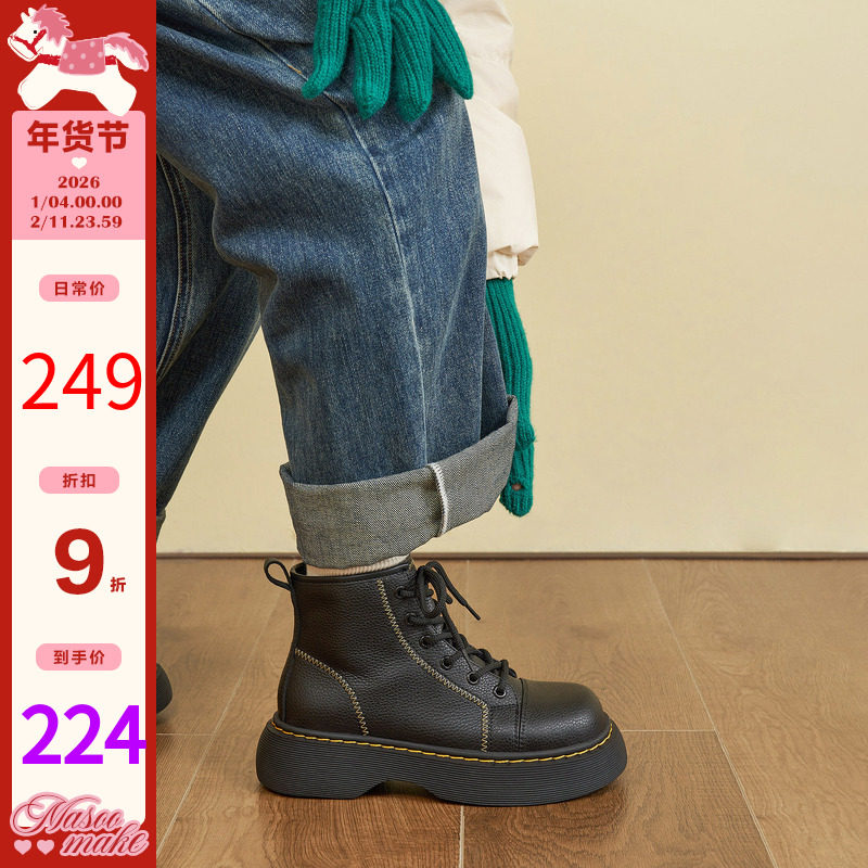 玛速主义 2025新款英伦风时尚厚底马丁靴女冬黑色短靴ins潮炸街靴