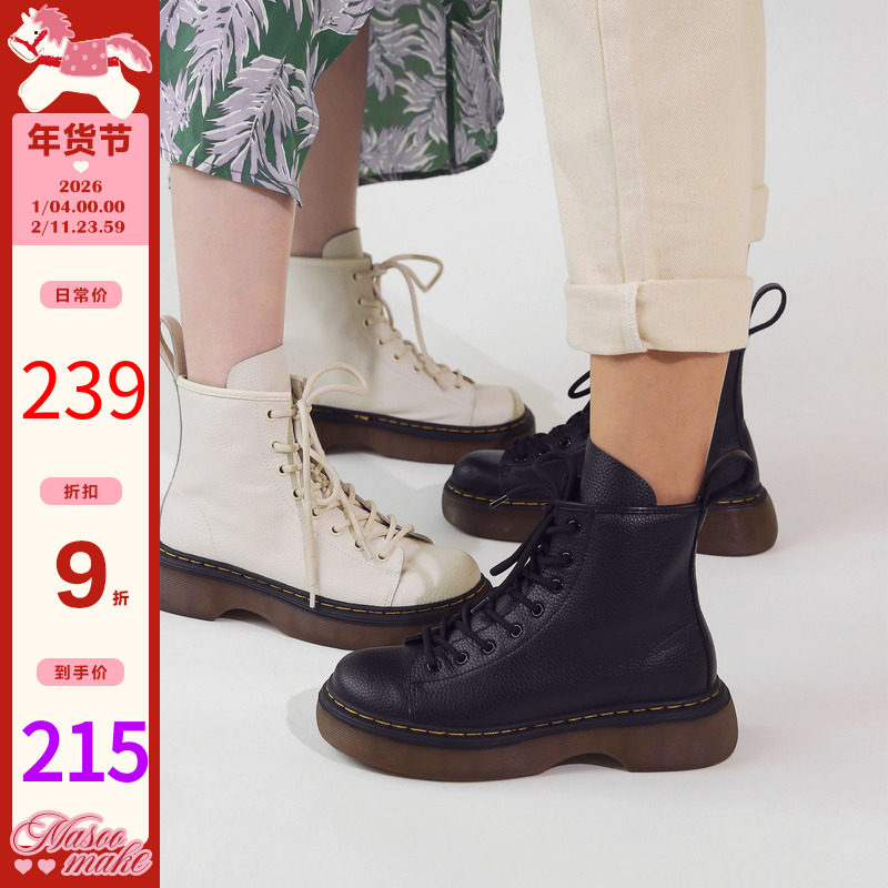 玛速主义2025新款厚底白色马丁靴女冬英伦风黑色短靴百搭炸街靴子