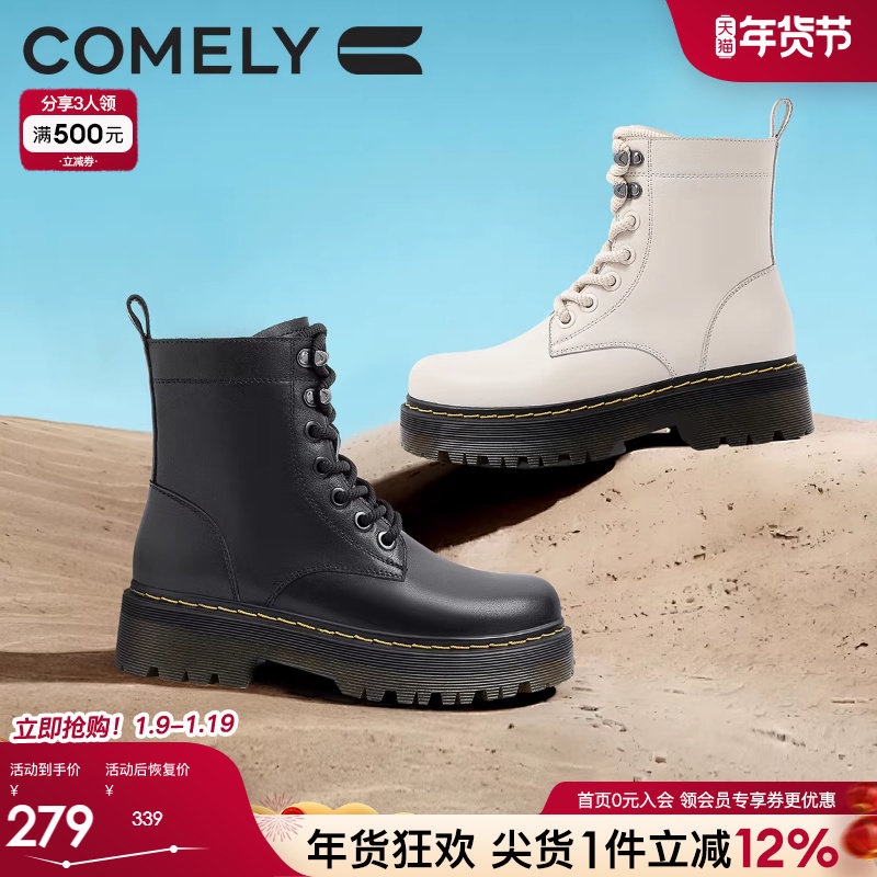 大东马丁靴女冬季新款时尚厚底加绒保暖马丁靴舒适圆头短靴女1612