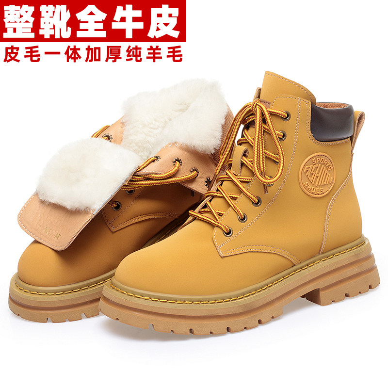 羊毛马丁靴女冬加绒加厚保暖棉靴皮毛一体雪地靴厚底短靴防滑棉鞋